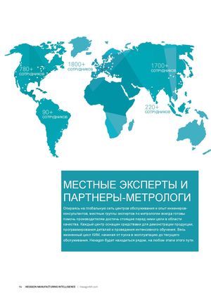 1800+780+СОТРУДНИКОВ 1700+ СОТРУДНИКОВ СОТРУДНИКОВ 220+ 90+ СОТРУДНИКОВ СОТРУДНИКОВ МЕСТНЫЕ ЭКСПЕРТЫ И ПАРТНЕРЫ-МЕТРОЛОГИ Опираясь на глобальную сеть центров обслуживания и опыт инженеров- консультантов, местные группы экспертов по метрологии всегда готовы помочь производителям достичь стоящие перед ними цели в области качества. Каждый центр оснащен средствами для демонстрации продукции, программирования деталей и проведения интенсивного обучения. Весь жизненный цикл КИМ, начиная от пуска в эксплуатацию до текущего обслуживания, Hexagon будет находиться рядом, на любом этапе этого пути. 14 HEXAGON MANUFACTURING INTELLIGENCE | HexagonMI.com