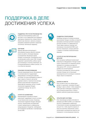 ПОДДЕРЖКА И ОБСЛУЖИВАНИЕ ПОДДЕРЖКА В ДЕЛЕ ДОСТИЖЕНИЯ УСПЕХА ПОДДЕРЖКА ПРИ ПУСКЕ ПРОИЗВОДСТВА Обеспечьте бесперебойную работу примонтаже и по его завершении при поддержке ПОДДЕРЖКА ПРИЛОЖЕНИЙИнженеры-эксперты по метрологическим прикладных специалистов, которые помогут приложениям Hexagon способны составлять обучить ваш персонал, написать исходные программы инспекции деталей в процессе программы измерения деталей и предложат монтажа системы и по завершении его. постоянную техническую поддержку. Такой сервис идеально подходит для начинающих пользователей КИМ и для ОБУЧЕНИЕ опытных операторов, которые работают Важным фактором эксплуатации и с новыми и сложными геометрическими обслуживания машины является хорошее формами. знание ее работы. Благодаря вводным и расширенным обучающим курсам УСЛУГИ ПО ИНСПЕКТИРОВАНИЮ Hexagon по метрологии, пользователи могут ДЕТАЛЕЙ оптимизировать работу своих КИМ. Hexagon Если выходные требования превосходят предлагает широкий выбор учебных курсов возможности оборудования, Hexagon может для начинающих и опытных операторов, как помочь. Выполняется ли измерение детали, в специализированных учебных центрах, так проводится ли проверка пригодности, и на объектах заказчика. сбор данных SPC, контроль деформаций / дрейфа или инспектирование ПЛАНОВОЕ ТЕХОБСЛУЖИВАНИЕ в процессе производства, воспользуйтесь Планово-предупредительное обслуживание услугами Hexagon для оптимизации и плановые ремонты поддерживают производительности инспекции и снижения оборудование в оптимальном рабочем общих затрат на измерения. состоянии. В случае необходимости ремонта будут покрыты стоимость запчастей, трудовые затраты и транспортные расходы. АНАЛИЗ НА МЕСТЕ Данная услуга включает специального Если условия в цеху или лаборатории представителя заказчика, доступ к службе далеки от идеальных, инженеры Hexagon технической поддержки Hexagon прибудут к вам на объект, чтобы определить, и удаленную помощь там, где это какие действия необходимо предпринять применимо. для улучшения результатов, и помогут выбрать наиболее приемлемое решение. УСЛУГИ ПО КАЛИБРОВКЕ Максимизируйте окупаемость ваших инвестиций, поддерживая точность системы УКРЫТИЯ ДЛЯ СИСТЕМЫ на протяжении всей ее жизни. Инженеры Если окружающие условия установки не технической поддержки Hexagon обладают пригодны для КИМ GLOBAL и не позволяют опытом, специальными инструментами достичь и поддерживать заявленной и имеют аккредитацию по современным в технических условиях производительности, международным стандартам, необходимую или для того, чтобы защитить машину от для проведения калибровки и сертификации пыли или масляных загрязнений, можно систем КИМ. использовать пылезащитные укрытия или помещения с контролируемым климатом. HexagonMI.com | HEXAGON MANUFACTURING INTELLIGENCE 15