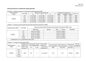 Лист № 3 Всего листов 5 Метрологические и технические характеристики Таблица 2 - Метрологические и технические характеристики КИМ НаименованиеКИМ Тип КИМ Диапазон измерений, ммXY Z Габаритные размеры, ммдлинаширинавысотаМасса, кг 574 от 0 до 500 от 0 до 700 от 0 до 450 1470 2400 2630 3500 774 от 0 до 700 от 0 до 700 от 0 до 450 1670 2400 2630 5000 LEGEX 776 от 0 до 700 от 0 до 700 от 0 до 600 1670 2400 2930 5100 9106 от 0 до 900 от 0 до 1000 от 0 до 600 1870 3030 3050 6500 12128 от 0 до 1200 от 0 до 1200 от 0 до 800 2356 3622 3590 10500 Таблица 3 - Пределы допускаемой абсолютной объемной погрешности MPEE Наименование КИМ Тип КИМ Пределы допускаемой абсолютной объемной погрешности MPEE, мкм MPP310Q SP25M SP80 TP7M MTP2000 574 ±(0,28+1L/1000)* ±(0,38+1L/1000)* 774 ±(0,28+1L/1000)* ±(0,38+1L/1000)* LEGEX 776 ±(0,28+1L/1000)* ±(0,38+1L/1000)* 9106 ±(0,28+1L/1000)* ±(0,38+1L/1000)* 12128 ±(0,6+1,5L/1000)* ±(0,8+1,5L/1000)* * Примечание: где L измеряемая длина в мм Таблица 4 - Условия эксплуатации КИМ НаименованиеКИМ Тип Нормальная Допускаемое измене- Допустимаяобласть зна-ние температурывлажностьчений темпе-ратуры, °C°С/ч°С/24чвоздуха приизмерении, %Расход воздухапри измерении,л/минДопустимое дав-ление при измере-нии, МПаТребованияк электро-питанию, ВЧастотапеременно-го тока, Гц 574 774 LEGEX 776 20±2 0,5 1 от 55 до 65 120 0,4 220±22 50/60 9106 12128