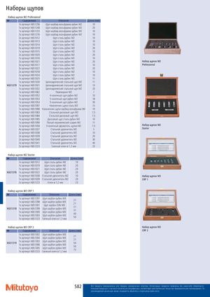 Наборы щупов Набор щупов M2 Professional № Содержимое Описание Длина [мм] 1x артикул K651236 Щуп карбид вольфрама-рубин M2 10 1x артикул K651248 Щуп карбид вольфрама-рубин M2 20 1x артикул K651233 Щуп карбид вольфрама-рубин M2 10 2x артикул K651276 Щуп карбид вольфрама-рубин M2 10 2x артикул K651012 Щуп сталь-рубин M2 10 1x артикул K651013 Щуп сталь-рубин M2 10 3x артикул K651014 Щуп сталь-рубин M2 10 5x артикул K651019 Щуп сталь-рубин M2 20 1x артикул K651015 Щуп сталь-рубин M2 10 2x артикул K651020 Щуп сталь-рубин M2 20 1x артикул K651016 Щуп сталь-рубин M2 10 2x артикул K651021 Щуп сталь-рубин M2 20 Набор щупов M2 3x артикул K651017 Щуп сталь-рубин M2 10 Professional 3x артикул K651022 Щуп сталь-рубин M2 20 2x артикул K651018 Щуп сталь-рубин M2 10 2x артикул K651024 Щуп сталь-рубин M2 10 1x артикул K651025 Щуп сталь-рубин M2 11 1x артикул K651030 Цилиндрический стальной щуп M2 11 K651379 1x артикул K651031 Цилиндрический стальной щуп M2 13 1x артикул K651032 Цилиндрический стальной щуп M2 20 1x артикул K651062 Переходник M2 7 1x артикул K651052 4-конечный щуп-рубин M2 10 1x артикул K651053 5-конечный щуп-рубин M2 18 1x артикул K651054 5-конечный щуп-рубин M2 30 1x артикул K651097 Наконечник щупа-сталь M2 15 1x артикул K651098 Наконечник щупа-карбид вольфрама M2 10 1x артикул K651083 Стальной дисковый щуп M2 7,5 1x артикул K651084 Стальной дисковый щуп M2 7,5 1x артикул K651085 Дисковый щуп сталь-рубин M2 10 1x артикул K651090 Полый керамический шарик M2 111x артикул K6510585-конечный держатель щупов M27,54x артикул K651037Стальной удлинитель M25Набор щупов M2Starter 2x артикул K651038 Стальной удлинитель M2 10 2x артикул K651039 Стальной удлинитель M2 20 2x артикул K651040 Стальной удлинитель M2 30 2x артикул K651041 Стальной удлинитель M2 40 2x артикул K651223 Гаечный ключ ø 1,2 мм 23 Набор щупов M2 Starter № Содержимое Описание Длина [мм] 1x артикул K651012 Щуп сталь-рубин M2 10 1x артикул K651019 Щуп сталь-рубин M2 20 1x артикул K651021 Щуп сталь-рубин M2 20 K651376 1x артикул K651022 Щуп сталь-рубин M2 20 1x артикул K651038 Стальной удлинитель M2 10 Набор щупов M3 1x артикул K651039 Стальной удлинитель M2 20 CRP 1 2x артикул K651223 Ключ ø 1,2 мм 23 Набор щупов M3 CRP 1 № Содержимое Описание Длина [мм] 1x артикул K651297 Щуп карбон-рубин M31x артикул K651298Щуп карбон-рубин M31x артикул K651301Щуп карбон-SiNi M3K6513181x артикул K651299Щуп карбон-рубин M31x артикул K651300Щуп карбон-рубин M31x артикул K651303Щуп карбон-рубин M31x артикул K651223Гаечный ключ ø 1,2 мм212121314050 Набор щупов M3 CRP 2 Набор щупов M3 № Содержимое Описание Длина [мм] CRP 2 1x артикул K651302 Щуп карбон-рубин M31x артикул K651304Щуп карбон-рубин M3K6513191x артикул K6513031x артикул K651306Щуп карбон-рубин M3Щуп карбон-рубин M31x артикул K651305Щуп карбон-рубин M31x артикул K651223Гаечный ключ ø 1,2 мм2121505075 582 Все продукты предназначены для продажи коммерческим клиентам. Иллюстрации продуктов приведены без каких-либо обязательств.Описания продукции, в частности технические спецификации, соответствуют действительным только при предварительном подтверждении. По рекомендуемым розничным ценам, пожалуйста, обратитесь к отдельному прайс-листу. Все продукты предназначены для продажи
