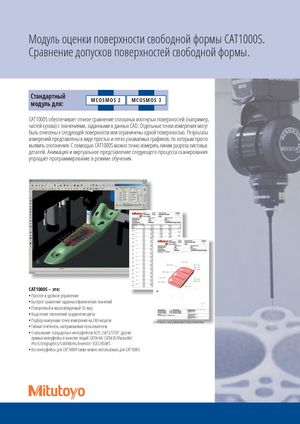 Модуль оценки поверхности свободной формы CAT1000S. Сравнение допусков поверхностей свободной формы. Стандартныймодуль для: MCOSMOS 2 MCOSMOS 3 CAT1000S обеспечивает точное сравнение сплошных изогнутых поверхностей (например, частей кузова) с значениями, заданными в данных CAD. Отдельные точки измерения могут быть отнесены к следующей поверхности или ограничены одной поверхностью. Результаты измерений представлены в виде простых и легко узнаваемых графиков, по которым просто выявить отклонения. С помощью CAT1000S можно точно измерить линии разреза листовых деталей. Анимация и виртуальное представление следующего процесса сканирования упрощает программирование в режиме обучения. CAT1000S – это: • Простое и удобное управление • Быстрое сравнение заданных/фактических значений • Поворотный и масштабируемый 3D-вид • Выделение отклонений градиентом цвета • Подбор наилучших точек измерения на CAD-модели Отчетность, настраиваемая пользователем • Гибкая отчетность, настраиваемая пользователем • Считывание стандартных интерфейсов ACIS (SAT)/STEP; другие прямые интерфейсы в качестве опций: CATIA V4/ CATIA V5/Parasolid/ Pro/E/Unigraphics/SolidWorks/Inventor/ IGES/VDAFS • Все интерфейсы для CAT1000P также можно использовать для CAT1000S