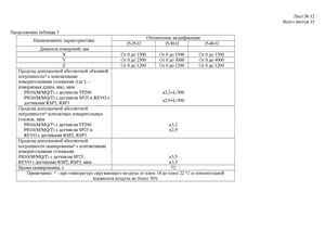 Лист № 12 Всего листов 15 Продолжение таблицы 3 Наименование характеристики Обозначение модификации 15-25-12 15-30-12 15-40-12 Диапазон измерений, мм X От 0 до 1500 От 0 до 1500 От 0 до 1500 Y От 0 до 2500 От 0 до 3000 От 0 до 4000 Z От 0 до 1200 От 0 до 1200 От 0 до 1200 Пределы допускаемой абсолютной объемной погрешности* с контактными измерительными головками (где L – измеряемая длина, мм), мкм PH10(M/MQ/T) с датчиком TP200 ±3,2+L/300 PH10(M/MQ/T) с датчиком SP25 и REVO сдатчиками RSP2, RSP3 ±2,9+L/300 Пределы допускаемой абсолютной погрешности* контактных измерительных головок, мкм PH10(M/MQ/T) с датчиком TP200 ±3,2 PH10(M/MQ/T) с датчиком SP25 и ±2,9 REVO с датчиками RSP2, RSP3 Пределы допускаемой абсолютной погрешности сканирования* с контактными измерительными головками PH10(M/MQ/T) с датчиком SP25 ±3,5 REVO с датчиками RSP2, RSP3, мкм ±3,5 Время сканирования, с 72 Примечание: * - при температуре окружающего воздуха от плюс 18 до плюс 22 ºС и относительной влажности воздуха не более 70%