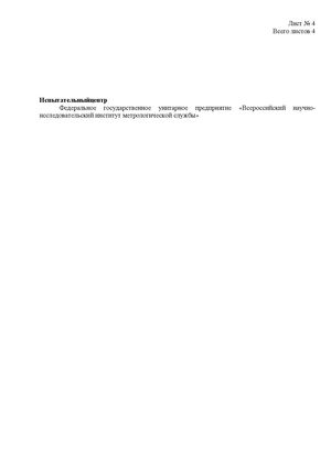 Лист № 4 Всего листов 4 Испытательныйцентр Федеральное государственное унитарное предприятие «Всероссийский научно- исследовательский институт метрологической службы»