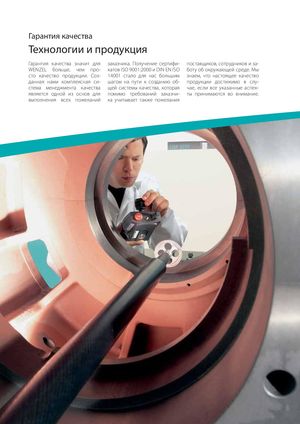 Гарантия качества Технологии и продукция Гарантия качества значит для заказчика. Получение сертифи- поставщиков, сотрудников и за- WENZEL больше, чем про- катов ISO 9001:2000 и DIN EN ISO боту об окружающей среде. Мы сто качество продукции. Соз- 14001 стало для нас большим знаем, что настоящее качество данная нами комплексная си- шагом на пути к созданию об- продукции достижимо в слу- стема менеджмента качества щей системы качества, которая чае, если все указанные аспек- является одной из основ для помимо требований заказчи- ты принимаются во внимание. выполнения всех пожеланий ка учитывает также пожелания