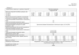 Лист № 16 Всего листов 21 Таблица 13 Наименование параметра и единицы измерений Значение параметра ScopeCheck FB Диапазон измерений линейных размеров, мм: - по оси X 0-1000 0-1000 0-1000 0-1000 0-1500 0-1500 - по оси Y 0-650 0-650 0-1000 0-1000 0-1000 0-1000 - по оси Z 0-150 0-300 0-150 0-300 0-150 0-300 Предел допускаемой случайной составляющей погрешности измерений координат точки, мкм: - при использовании бесконтактного оптического щупа 1,5 - при использовании контактного щупа 1,9 Пределы допускаемой абсолютной погрешности измерений линейных размеров по одной При использовании бесконтактного оптического щупа: ±(1,5+L/250) координате, мкм Пределы допускаемой абсолютной погрешности измерений линейных размеров, мкм: - при использовании бесконтактного оптического щупа ±(2,9+L/100) - при использовании контактного щупа ±(1,9+L/250) Дискретность отсчета, мкм 0,1 Масса измеряемой детали, кг, не более 50 Габаритные размеры (длина, ширина, высота), 1450× 1450× 1450× 1450× 2100× 2100× мм, не более 1750× 1750× 2550× 2550× 2550× 2550× 2220 2220 2220 2220 2220 2220 Масса, кг, не более 2500 2500 3000 3000 3500 3500 Параметры электропитания напряжение (230±23) В или (115±11) В переменного тока частотой (48-62) Гц, потребляемая мощность не более 1 кВт Средний срок службы, лет 10 Наработка на отказ, ч 10000