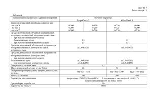 Лист № 7 Всего листов 21 Таблица 4 Наименование параметра и единицы измерений Значение параметра ScopeCheck S VideoCheck S Диапазон измерений линейных размеров, мм: - по оси X 0-300 0-400 0-250 0-400 - по оси Y 0-200 0-200 0-125 0-200 - по оси Z 0-200 0-200 0-250 0-250 Предел допускаемой случайной составляющей погрешности измерений координат точки, мкм: - при использовании оптического бесконтактного щупа 1,5 1,1 - при использовании контактного щупа 2,4 2,3 Пределы допускаемой абсолютной погрешности измерений линейных размеров по одной ±(1,5+L/120) ±(1,1+L/400) координате, мкм Пределы допускаемой абсолютной погрешности измерений линейных размеров, мкм: - при использовании оптического бесконтактного щупа ±(2,9+L/100) ±(2,5+L/250) - при использовании контактного щупа ±(2,4+L/150) ±(2,3+L/250) Дискретность отсчета, мкм 0,1 Масса измеряемой детали, кг, не более 20 30 40 Габаритные размеры (длина, ширина, высота), мм,не более 750×737×1664 930×770×1700 1220×770×1700 Масса, кг, не более 260 380 480 Параметры электропитания напряжение (230±23) В или (115±11) В переменного тока частотой (48-62) Гц, потребляемая мощность не более 1 кВт Средний срок службы, лет 10 Наработка на отказ, ч 10000