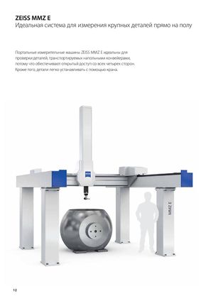 ZEISS MMZ E Идеальная система для измерения крупных деталей прямо на полу Портальные измерительные машины ZEISS MMZ E идеальны для проверки деталей, транспортируемых напольными конвейерами, потому что обеспечивают открытый доступ со всех четырех сторон. Кроме того, детали легко устанавливать с помощью крана. 12