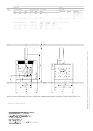 Вследствие постоянного совершенствования продукции возможно внесение изменений в конструкцию и комплекты поставки. © Carl Zeiss Industrielle Messtechnik Gmbh Размеры в мм Масса в кг ZEISS Диапазон измерений Рабочий диапазон (макс. размер детали) Макс. деталь CenterMax Ось X Ось Y Ось Z Ширина Длина Высота Универсальный Гранитный Опционально – стол стол поворотный стол для G104 G105 G106 B21 B20 B15 центрирования деталей (включая крепежные приспособления) 1100 1200 900 955 1520 8411) 1000 750 250 Габаритные размеры машины Площадь по полу Рабочая Пространство Транспортная Измерительная машина высота1) для сборки высота Ширина Длина Высота Ширина Длина Высота Высота Высота B6 B5 B7 w1 l1 B23 c1 T 2092 2140 3340 2040 1830 652 ≥200 2550 6000 Примечание: Приведенные значения размеров и масс являются приблизительными. Размеры в мм. Возможны изменения. Размеры указаны на основании стандарта DIN 4000-167:2009. 1) В зависимости от зажимного устройства. Официальный представитель Carl Zeiss IMT Центр Прогрессивных Технологий ООО «Урал Инжениринг Консалтинг» 614094, г. Пермь, ул. Мильчакова, д.11; тел: 8 (342) 224-43-29; факс: 8 (342) 224-47-32; моб. 8 951 92 99 626 E-mail: pva@uralinco-centr.ru, zpt@uralinco-centr.ru www.uralinco-centr.ru