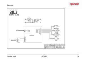 Appendix BILZ GmbH & Co. KG Li1 Li2 SC1 MY2 FI - GFP Lo1 SC2 Lo2 Haupt-Luft-Schalter X2 main air switch X1 schwarz, black Out0schwarz, black- RS485 +24 VDC gelb, yellow blau, blue Out1 A weiß, white schwarz, black - B grün, green blau, blue Out2 - braun, brown schwarz, black - Hubzylinder Spule blau, blue Out3schwarz, black- lift for coil Out4 - I/O-ErweiterungI/O-Extension Hubzylinder Futter X3 lift tool - In0 + S1 -In1 Positionsschalter + Luftdusche position switch -In2 dry air + Maßstab 88,94% FirmaBilz GmbH & Co. KGZeichnerH. Esslinger Blatt 2 von 2 Änderung 12.06.15 11:39 Titel Ausgabe 12.06.15 11:59 ISG3410WK-15-WS Datei ISG3410WK-15-WS.T3001 Projekt ISG3400 October 2015 ISG3410 84