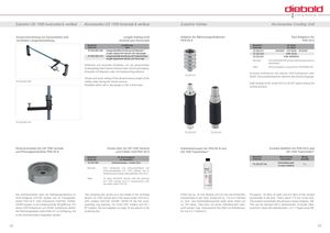 Zubehör US 1100 horizontal & vertikal Accessories US 1100 horizotal & vertical Zubehör Kühler Accessories Cooling Unit Zusatzvorrichtung zur horizontalen und Length Setting Unit Adapter für Werkzeugaufnahmen Tool Adapters for vertikalen Längeneinstellung Vertical and Horizontal FKS 04 S FKS 04 S Bestell-Nr. Ausführung Bestell-Nr. für Kegel Order-No. Type Order-No. for Taper 79.500.800.400 Längeneinstellvorrichtung mit Messuhr / 79.220.011 SK30/40 CAT30/40 BT30/40 Length adjustment device with dial gauge 79.220.020 HSK 25/32 79.500.800.410 Längeneinstellvorrichtung mit Festanschlag / 79.220.021 HSK 40/50/F63 Length adjustment device with fixed stop Hinweis: Für HSK63/80/100 ist keine Werkzeugaufnahme erforderlich. Einfaches und schnelles Einstellen von der gewünschten Auskarglänge des Fräsers während dem Schrumpfvorgang. Note: No tool adapter is required for HSK63/80/100. Entweder mit Messuhr oder mit Festanschlag lieferbar. Sicheres Aufnehmen der kleinen HSK Aufnahmen oder 79.220.011Simple and quick setting of the desired recess length of theSK/BT Schrumpfaufnahmen während des Abkühlvorgangs. 79.500.800.400 milling cutter during the shrink process.Available either with a dial gauge or with a fixed stop. Safe holding of the small HKS or SK /BT tapers during thecooling process. 79.500.800.410 79.220.020 79.220.021 Zentrierscheibe für US 1100 vertikal Center Disc for US 1100 Vertical Kühlmittelzusatz für FKS 04 S und Coolant Additive for FKS 04 S and und Flüssigkeitskühler FKS 04 S und Chiller Unit FKS 04 S US 1100 TubeChiller® US 1100 TubeChiller® Bestell-Nr. für Schrumpfgerät Bestell-Nr. Beschreibung Menge Order-No. for ShrinkUnit Order-No. Description Quantity 79.220.003 Zentrierscheibe / Center Disc 79.220.001.BL KühlmittelzusatzCoolant Additive1 L. Hinweis: Zum Zentrieren von Schrumpffuttern auf Schrumpfgeräten US 1100 vertikal und in Verbindung mit einem Wasserkühler FKS 04 S. Note: To align ShrinkFit chucks with the devices US 1100 vertical and in counjunction with the water chiller FKS 04. Die Zentrierscheibe dient als Werkzeugaufnahme im The centering disc serves as a tool holder in the shrinking Füllen Sie ca. 18 Liter Wasser und 0,9 Liter des Kühlmittel- Fill approx. 18 liters of water and 0.9 liters of the coolant Schrumpfgerät US1100 vertikal und im Flüssigkeits- device US 1100 vertical and in the liquid cooler FKS 04 S. konzentrates in den Tank. Entspricht ca. 173 mm Füllhöhe concentrate in the tank. That’s about 173 mm in the tank. kühler FKS 04 S. HSK Aufnahmen HSK100, HSK80, HSK holders HSK100, HSK80, HSK63 fit into the corre- im Tank. Das Kühlmittelkonzentrat sollte einen Anteil von The coolant concentrate should have a share of approx. 5%. HSK63 passen in die entsprechende Ringöffnung. Für sponding ring opening. For small HSK holders and SK / ca. 5% haben. Dies kann mit einem Refraktometer über- This can be checked with a refractometer. Example: Mea- kleine HSK Aufnahmen und SK/BT Aufnahmen stehen BT holders, the tool adapters on page 33 are placed in the prüft werden. Bsp: Gemessener Brix Wert mit Refraktome- sured Brix value with refractometer x 2.3 = Target value 5%. die Werkzeugadapter siehe Seite 33 zu Verfügung, die centering disc. ter mal 2,3 = Zielwert 5. in die Zentrierscheibe eingesetzt werden. 32 33