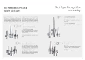 Werkzeugerkennung Tool Type Recognition leicht gemacht made easy Diebold-Schrumpffutter werden in verschiedene Diebold ShrinkFit chucks are divided into different TSF: Schlanke Aufnahmen Kategorien aufgeteilt. Diese sind zu erkennen an den categories. The ShrinkFit chuck type can be TSF: SlimFit Shink Chucks Rillen, die am Werkzeugschaft eingefräst sind. Es identified by the grooves located at the nose part of gibt Werkzeuge ohne Rille als Standardaufnahme, the ShrinkFit holder. Tool holders without a groove TSF: Schlanke Futter mit zwei Rillen Aufnahmen mit einer Rille als ultraschlanke Aufnahmen have standard contour, holders with one groove are Gemacht für den Werkzeugformenbau und Formen- für die Mikrobearbeitung, schlanke Aufnahmen mit zwei ultra-slim holders for micro production, two grooves bau. Das Futter hat eine schlanke Außenkontur und Rillen für den Werkzeugformenbau und Aufnahmen represent tool holders for mold makers and four 3° Schräge. mit 4 Rillen, die sogenannten Pyroquart®-Aufnahmen grooves stand for Pyroquart® holders for heavy für die Sc1 hwerze2 rspanun3 g. 4 5 6 7milling. 8 9 10 11 12 TSF: SlimFit with two grooves A A Made für the mold and die industry. The holder has a slim contour and a 3° angle for mold cavities. T: Standardaufnahmen nach DIN B B T: ShrinkFit Holders with Standard Contour according to DIN C TUS = 1Rille C TUS = 1 groove T: Standardaufnahme ohne Rille Futter ohne Identikfikationsrille werden mit dem fest- gelegten Standardparametersatz aller ThermoGrip®- D D 1 2 3 4 5 6 Geräte ges7 chrumpft. 8 9 10 11 12 TSF = 2 Rillen TSF = 2 grooves A E T: ShrinkFit Holder Standard without groove E A TT == wohitnheouRtiglHlerooovldeers without identification groove have standard contour and the shrink process uses standard para- F meters.Pyroquart®= 4 Rillen F Pyroquart™ = 4 grooves B B G G Nicht bemaßte Kanten 0,2x45° Freimaßtoleranzen Oberfläche Maßstab 2:1 Position Gewicht 216.902 g Schutzvermerk nach DIN ISO 16016 beachten ! nachDIN ISO 2768-1Ra in µm Werkstoff Abmaße Copyright reserved to DIN ISO 16016 ! mittel DIN ISO 1302 X38CrMoV5-1 1.2343 Ø40 x 70 CAD-System: SWx 2011 Datum Name Benennung: C H Bearb. 05.12.11 LeipoldGepr.05.12.11KalusSchrumpffutter C Norm HSK40-E DIN69893 ø6 A=50 NL=24 1 2 3 4 5 6 7TUS: U8 ltra Schlanke Au72.5f68n.50a3.1h00 menA2 Goldring-Werkzeugfabrik Artikel Nr.: An der Sägmühle 4 D-72417 Jungingen Blatt Zust. Änderung Datum Name EDV Nr.: Rillen_Parameterzuordung_für_KaEtarlsoagtz für Ersetzt durch 1 von 1 Pyroquart® Aufnahmen TUS: Ultra Slim Shrink Holders Pyroquart® Shrink Chucks D D TUS: Ultra Schlanke Futter mit nur einer Rille Pyroquart®: TSF = 2 Rillen Diese Futter sind für die Mikrobearbeitung geeignet. Pyroquart® Futter haben 4 Rillen und sind verstärkte TSF = 2 grooveDs urch kleinste Störkonturen, kürzeste Baulänge und ThermoGrip® Futter für die Schwerzerspanung. minimale Masse kann auf kleinstem Raum mit ext- E rem hohen Drehzahlen gearbeitet werden. E Pyroquart™: Pyroquart™ holders have four grooves and are TUS: Ultra Slim with only one groove designed for heavy milling. Ultra Slim holders are designed for micro production. F Pyroquart® S= l4imRillnenose configuration, minimum weight and mass F Pyroquart™i=s4pgerorofveecs t for low levels and high speed. G G 40 Nicht bemaßte Kanten 0,2x45° Freimaßtoleranzen Oberfläche Maßstab 2:1 Position Gewicht 216.902 g 41 Schutzvermerk nach DIN ISO 16016 beachten ! nachDIN ISO 2768-1Ra in µm Werkstoff Abmaße Copyright reserved to DIN ISO 16016 ! mittel DIN ISO 1302 X38CrMoV5-1 1.2343 Ø40 x 70 CAD-System: SWx 2011 Datum Name Benennung: Bearb. 05.12.11 Leipold Druckdatum: 27.08.2012 12:49:46 / framalho framalho