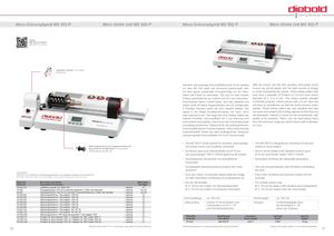 Micro-Schrumpfgerät MS 502-P Micro Shrink Unit MS 502-P Micro-Schrumpfgerät MS 502-P Micro Shrink Unit MS 502-P Video: MS 502-P in Aktion MS 502-P in action Luftkühler manuell / Air Chiller 79.323.210 Sensible, dünnwandige Schrumpffutter bis Ø 16 mm werden With the Shrink Unit MS 502 sensitive, thin-walled shrink mit dem MS 502 sanft und schonend geschrumpft, also chucks are shrunk gently with the right amount of energy mit dem genau passenden Energieeintrag um ein Über- to avoid overheating the chucks. Small milling cutters that hitzen der Futter zu vermeiden. Oft wird mit sehr kleinen only have a diameter of 0.04mm to 0.01mm have shank Fräsern gearbeitet die nur 0.04mm bis 0.01 mm Schneiden- diameter of 3, 4 or 6 mm. This shows another strength Durchmesser haben. Diese Fräser sind sehr sensibel und of Diebold products. Shrink chucks with a 3 mm bore are dürfen nicht mit festen Gegenständen wie z.B. Kühlglocken not easy to manufacture so that the shrink process works in Kontakt kommen damit sie nicht zerstört werden. Sie reliably. These milling cutters are very sensitive and may haben in der Regel Schaftdurchmesser von 3mm, 4mm not come into contact with cooling sleeves so that they are oder maximal 6 mm. Hier zeigt sich eine weitere Stärke der not destroyed. Diebold is known for the exceptionally high Diebold Produkte. Schrumpffutter mit 3 mm Bohrung sind quality of its products. That’s why the best-selling items nicht einfach herzustellen, damit auch der Schrumpfprozess from the extensive range are shrink chucks with a diameter zuverlässig funktioniert. Diebold ist für die außergewöhnlich of 3 mm. hohe Qualität seiner Produkte bekannt, nicht zuletzt sind die meistverkauften Artikel aus dem umfangreichen Gesamts- ortiment gerade Schrumpffutter mit 3 mm Durchmesser. • Das MS 502-P wurde speziell für schlanke, dünnwandige • The MS 502-P is designed for shrinking of small tool Werkzeugaufnahme mit Längenanschlag und und extrem kurze Schrumpffutter entwickelt shanks in small holders Auswerfer-Pin für MS 502-P / Tool Adapter 79.320.020 bis 79.320.140 • Es können aber auch Standardfutter bis Ø 16 mm • Also to shrink holders with standard contour up to und Spannzangen TER11-TER20 geschrumpft werden Ø 16 mm and Shrink Collets TER11-TER20 • Automatisiertes Schrumpfen mit auswählbaren • Automated shrinking with selectable parameters Parametern • Die geregelte Generatorleistung erwärmt die Futter • The unit will automatically shut off before overheating schonend the tools Foto/Picture: MS 502-P mit Luftkühler und Werkzeugaufnahme mit Längenanschlag und Auswerfer-Pin • Auch bei Futtern mit kleinster Masse stellt die Anlage • Even when shrinking mini tools the holders will not MS 502-P with Air Chiller Unit and adapter with Length Setting and Push-Out-Pin vor dem Überhitzen rechtzeitig und prozesssicher ab overheat Bestell-Nr. Beschreibung Zubehör Siehe Seite • Nur für HM-Schäfte. • For carbide shanks only: Order-No. Description Accessories See Page Ø 3 – 16 mm bei Futtern mit Standardgeometrie Ø 3 – 16 mm for holders with standard nose configuration 79.323.210 Luftkühler manuell / Air chiller unit ○ optional 27 79.402 Flüssigkeitskühler FKS 04 S automatik gesteuert / Chiller unit automatic ○ optional 24–25 Ø 3 – 16 mm bei Futtern mit schlanker Geometrie Ø 3 – 16 mm for holders with slim nose design 79.403 Flüssigkeitskühler FKS 04 mit manueller Pneumatiksteuerung / Chiller unit manually ○ optional 24–25 79.320.020 Werkzeugaufnahme / Tool adapter HSK 20 ○ optional 27 79.320.025 Werkzeugaufnahme / Tool adapter HSK 2579.320.032Werkzeugaufnahme / Tool adapterHSK 32 ○ optional 27○ optional27 Schrumpflänge: ca. 250 mm Shrink length: ca. 250 mm 79.320.040 Werkzeugaufnahme / Tool adapter HSK 40 ○ optional 27 Lieferumfang: inklusiv 4 Ferritscheiben zum Includes: 4 interchangeable discs 79.320.050 Werkzeugaufnahme / Tool adapter HSK 50 ○ optional 27 Schrumpfen von Ø 3 – 16 for shrinking Ø 3 – 16 79.320.063 Werkzeugaufnahme / Tool adapter HSK 63 ○ optional 2779.320.130Werkzeugaufnahme / Tool adapterSK / BT 30○ optional27 und Schutzhandschuhe. and a set of gloves 79.320.140 Werkzeugaufnahme / Tool adapter SK / BT 40 ○ optional 27 79.TER.300 Werkzeugaufnahme TER Spannzangenhalter / Tool adapter TER ○ optional 27 79.TER.411 Einsätze für Spannzangen TER 11 / Adapters for TER Collets TER 11 ○ optional 31 Bestell-Nr. Bezeichnung Anschluss Leistung Gewicht 79.TER.416 Einsätze für Spannzangen TER 16 / Adapters for TER Collets TER 16 ○ optional 31 Order-No. Description Power Supply Power Weight 79.TER.420 Einsätze für Spannzangen TER 20 / Adapters for TER Collets TER 20 ○ optional 31 79.323 MS 502-P 220 V 3 kW 15 kg Zubehör siehe Seite 27 ff / Accessories, see page 27 and the following Werkzeugaufnahme mit Längenanschlag bitte separat bestellen. Adapter with length setting – to be ordered separately. 16 17