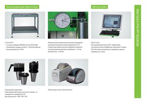 KENOVA set line V345/466 Аксессуары для пресеттера KELCH-CoVis Стол VariTUL Механический поворотный центр для проведения KELCH-CoVis • Стол для приборов KENOVA set line V345/V466 измерений смещения центра вращения (ось Y) Высокопроизводительное ПО с графическим • Занимаемая площадь: Д×Ш×В = 1020×620×800 мм Поворотный индикатор для измерения смещения пользовательским интерфейсом и функцией тачскрин. • Грузоподъемность: 250 кг центра вращения, диапазон измерений ± 2,5 мм, ПО CoVis имеет возможность передавать данные дискретность 1/100 мм напрямую на станок. Переходники (адаптеры) Принтер для печати термоэтикеток Переходники для разных конусов и оправок со стандартного шпинделя SK 50. Доступны для SK / HSK / PSK / VDI. 11
